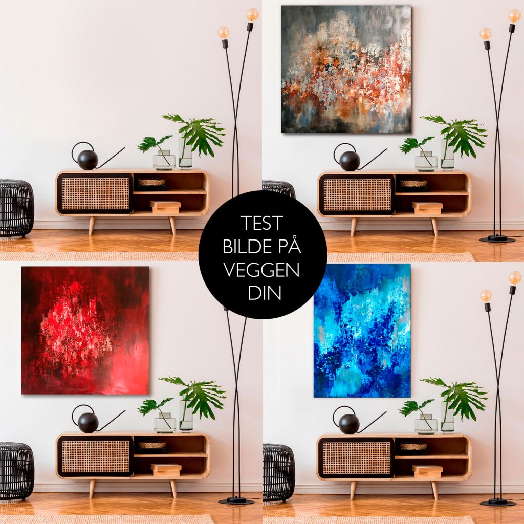 Passer det ikke å komme hit, da kan du sende et bilde av veggen din, så setter jeg inn ønskede bilder og sende de digitalt.