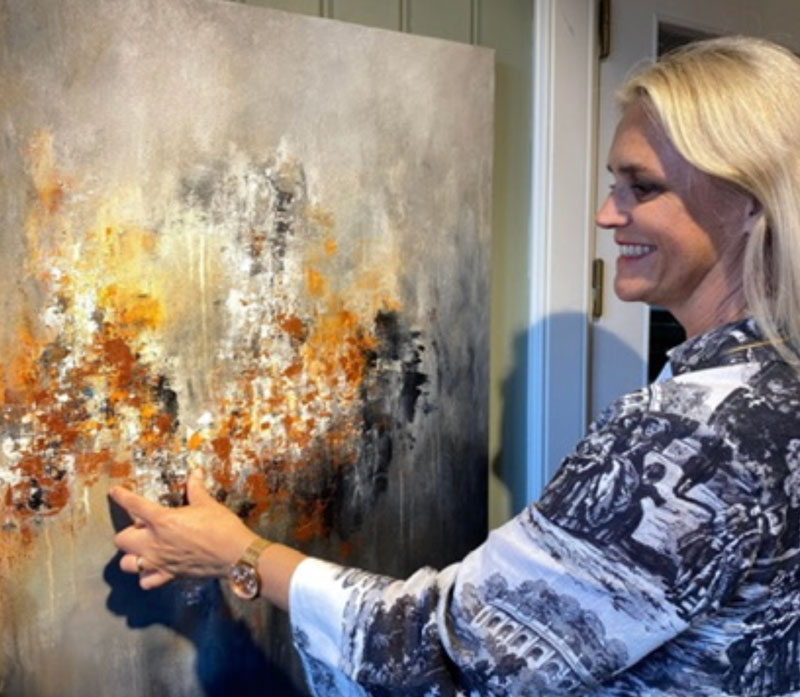 Med akryl på lerret som hovedmedium skapes abstrakte og levende malerier, bygget opp gjennom mange lag av teksturer og farger. Lidenskapen for farger, skygger og kontraster er tydelig til stede og gir verkene et unikt uttrykk.